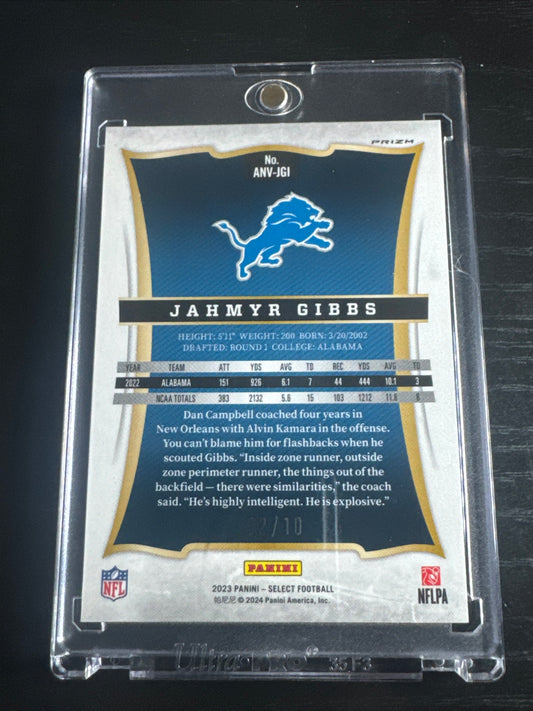 2023 Panini Select Jahmyr Gibbs #ANV-JGI Gold Anniversary 2/10
